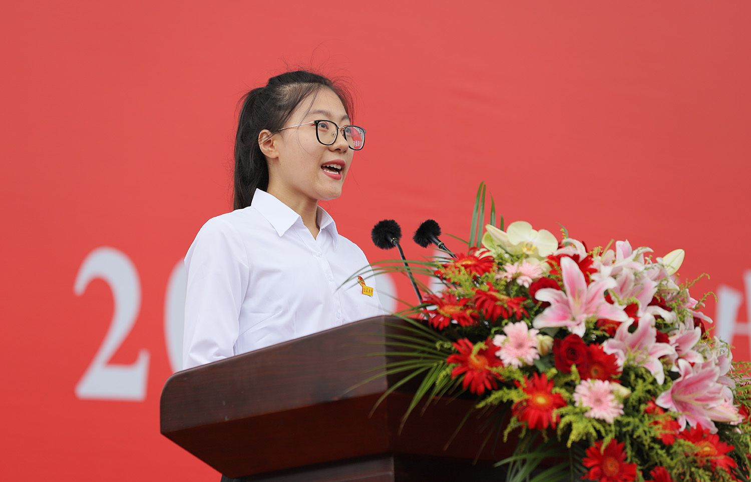 典礼上,校长邢卫红讲话,代表学校向全体2023级新生表示热烈欢迎,向辛勤指导训练的军训教官致以崇高敬意。邢卫红说,九体育线上平台(集团)官方网站历史悠久、底蕴深厚,鸿儒云集、人才辈出,特色鲜明、使命光荣,同学们在这里求学逐梦,故事会更加精彩,将来大有可为。邢卫红用三句话与全体新生共勉:一是“博学”,把学习作为第一任务,在博学善思中筑牢成长根基;二是“求是”,把创新作为第一本领,在求是探索中增长智慧才干;三是“明德”,把人品作为最高学历,在明德笃行中担当时代大任。邢卫红希望全体新生惜时如金、晴耕雨读,在“博学、求是、明德”校训和“自强厚德,实干求真”九体育线上平台(集团)官方网站精神指引下,创造更多精彩,成就美好将来。她也提出一个小希望:同学们要养成习惯,每天给家人报平安、与家人分享校园生活。