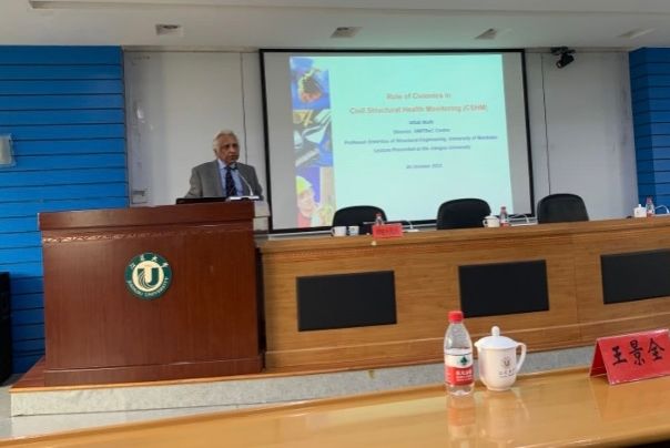 10月27日,加拿大皇家科学院院士阿夫塔布·穆夫提教授应邀来校学术交流,在会议中心第三报告厅作题为《土木电子工程学在土木结构健康监测中的应用》(Role of Civionics in Civil Structural Health Monitoring)的报告。报告由副校长王景全主持,土木工程与力学学院、结构健康管理研究院100余名师生参加了报告会。