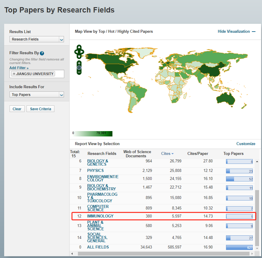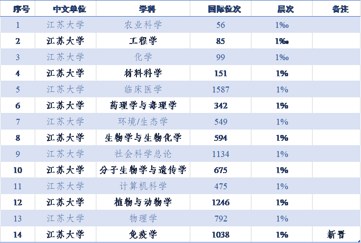 近日,科睿唯安发布了最新ESI数据,全球共有8917家科研机构上榜,其中包含432所中国内地高校。数据显示,九体育线上平台(集团)官方网站免疫学学科首次进入ESI全球排名前1%。截至目前,我校进入ESI全球前1%的学科数达14个,其中工程学、化学、农业科学3个学科排名前1‰。