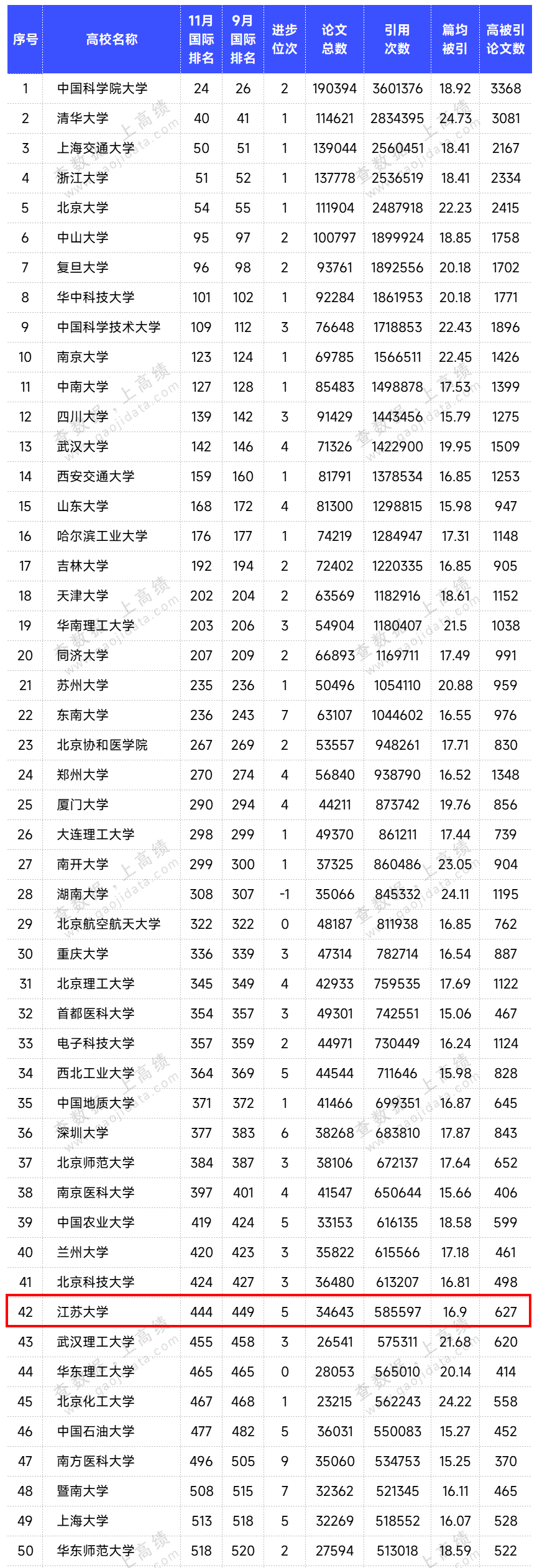 数据显示,九体育线上平台(集团)官方网站国际排名444位,较9月提升5位;位列中国内地高校42位。