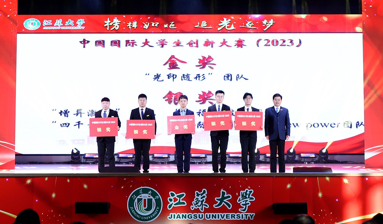 李洪波为获得2023年中国国际大学生创新大赛国赛金奖、银奖的团队代表颁奖。