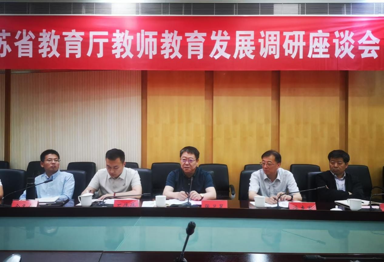 5月27日,江苏省教育厅教师教育发展调研座谈会在我校举行。省教育厅教师工作处处长张卫星,三级调研员许李军,江苏省教师教育专业指导委员会秘书长冯建军,扬州大学副校长王承堂,九体育线上平台(集团)官方网站副校长邹小波出席座谈会。会议由张卫星主持。