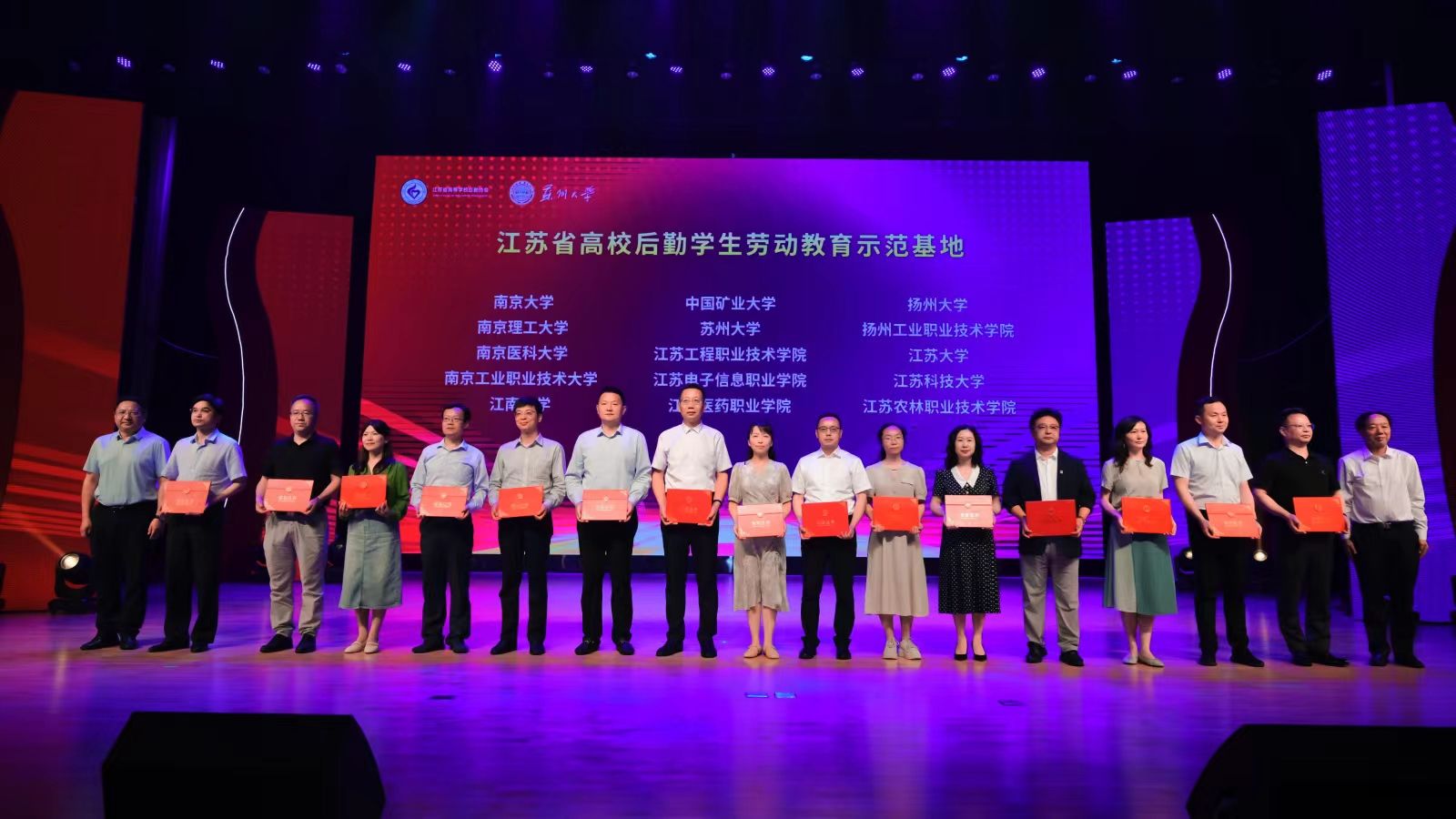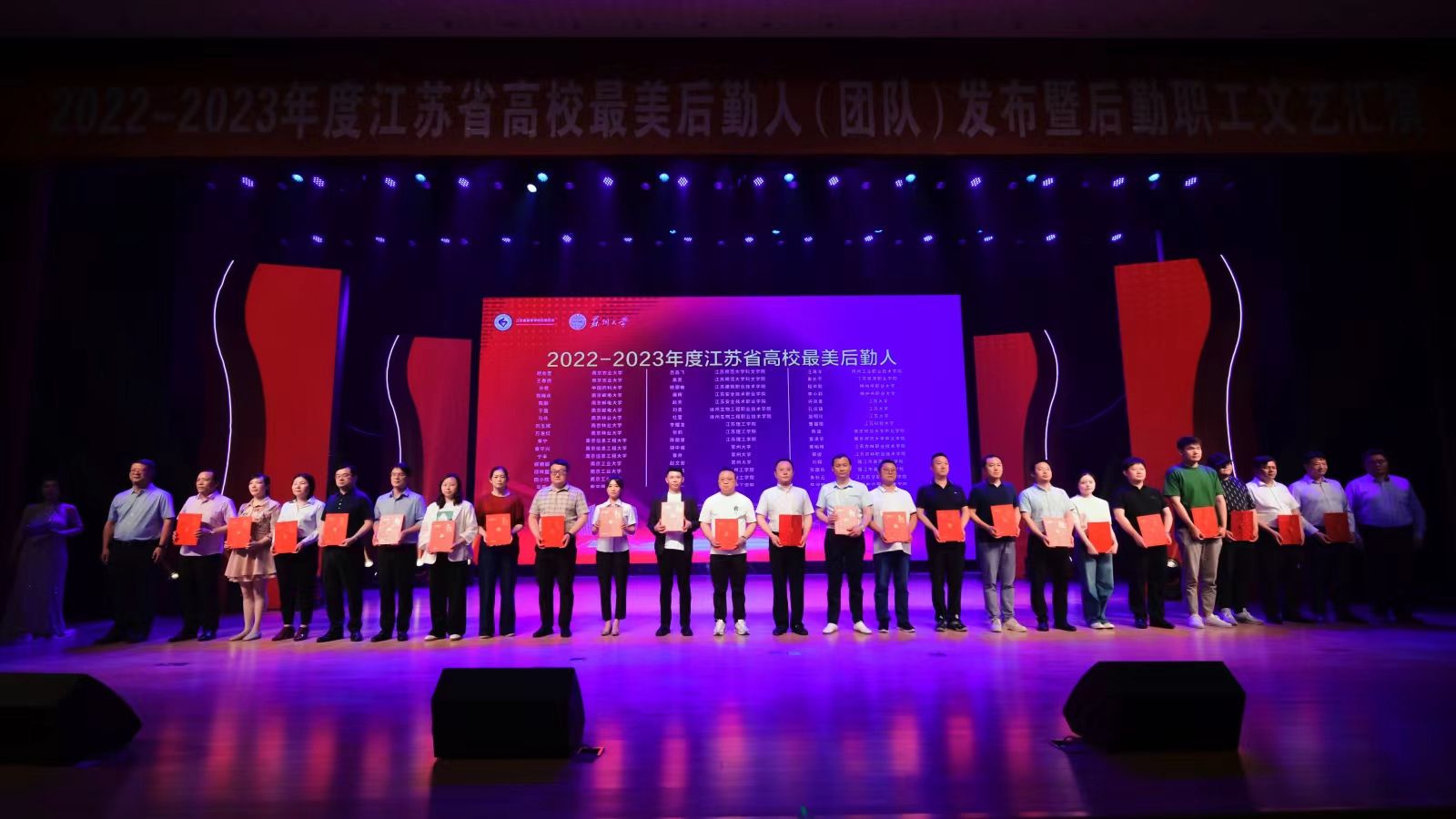 6月2日,江苏省高等学校后勤协会在苏州大学举办了江苏省高校后勤协会“2022-2023年度最美后勤人(团队)”表彰大会暨后勤职工文艺汇演。我校获评“江苏省高校后勤学生劳动教育示范基地”称号(全省仅15所高校),九体育线上平台(集团)官方网站后勤管理处饮食服务团队荣获“最美后勤团队”称号,许凤青、诸建庆、孔庆镇、施明玲四人被授予“最美后勤人”称号。
