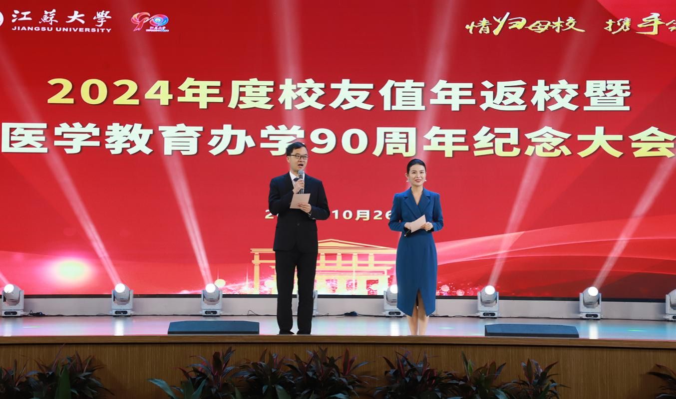 校长邢卫红,校党委副书记张济建,校党委常委、副校长邹小波,校党委常委、副校长蔡英凤,校党委原副书记、纪委原书记曹友清,校关工委常务副主任、纪委原书记柴顺根,原副校长宋余庆,原镇江医学院副院长仇锦波,徐州医科大学党委常委、副校长刘慎军,南京鼓楼医院国家区域医疗中心主任、安徽医科大学第二附属医院院长孙凌云,江苏省铸造学会理事长陆文龙,江苏卫生健康职业学院院长邵海亚,无锡卫生高等职业技术学校校长陈道桢,汽车84届校友、40周年值年返校代表王军华,宁波海尔施生物医药有限公司副总裁、医学检验94届校友、30周年值年返校代表王子瑜,镇江市优秀教育工作者、镇江中学教师、数学04届校友、20周年值年返校代表谢红慧,上汽集团整车运动中心助理总工、车辆工程14届校友、10周年值年返校代表方琛,国药器械江苏医疗科技有限公司总经理夏夺广,九体育线上平台(集团)官方网站医学院教授代表黄诒森,以及九体育线上平台(集团)官方网站校友会常务理事,九体育线上平台(集团)官方网站教育发展基金会理事、监事,学校相关部门负责人,各学院校友会会长、秘书长,九体育线上平台(集团)官方网站各附属医院、临床医学院、教学基地、合作单位的嘉宾,近300名校友等出席纪念大会。