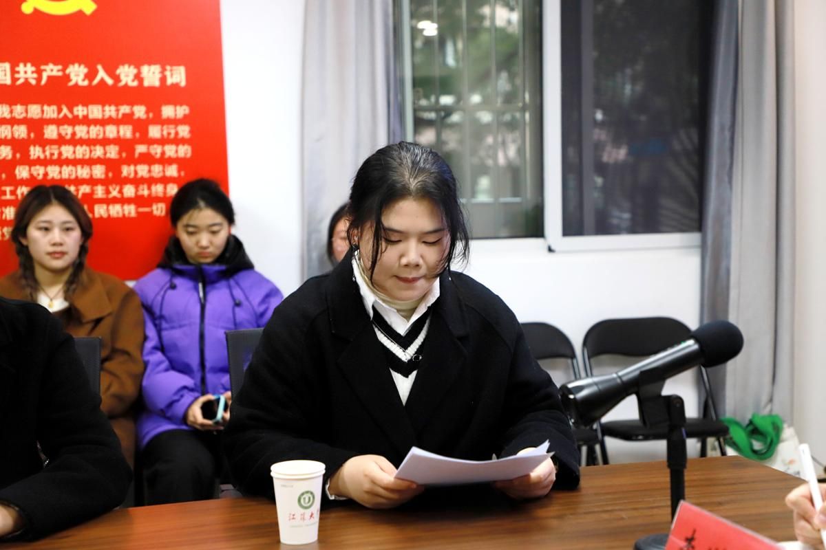 活动中,管理学院本科生党员俞倩霞分享了自己的成长经历,汇报了自己经过不断努力已成功保研至上海大学,也介绍了支部的组织生活情况。管理学院物流2202班班长杜钰灵表示,班级同学目标明确,在班风学风建设、科研比赛、创新能力等方面均有所突破,超过半数的同学都在为考研、考公或就业做准备,班风学风良好。财经学院金融2102班陈楚汶汇报了宿舍发展情况,并介绍了自己努力参加科研比赛、社会实践和志愿服务经历,现已成功保研至中国海洋大学。
