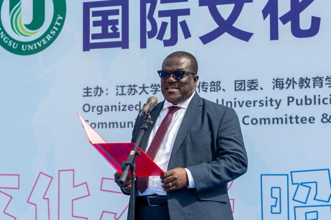 校党委书记李洪波,党委副书记张济建,党委常委、副校长杨道建、任旭东、蔡英凤,摩洛哥驻华大使阿卜杜勒卡德尔·安萨里,加纳驻华使馆临时代办亚历山大·本-阿夸亚,坦桑尼亚驻华使馆公使扎伊纳布·祖贝里·马索罗及其他外交官代表,江苏省教育厅对外合作与交流处四级调研员李勤径,江苏省高教学会外国留学生教育管理研究委员会副理事长兼秘书长张海军,镇江市委宣传部、镇江市外办、镇江市出入境等相关政府部门代表,苏州汇川技术、美兰集团、九体育线上平台(集团)官方网站源等企业代表以及学校相关部门主要负责人等出席开幕式。