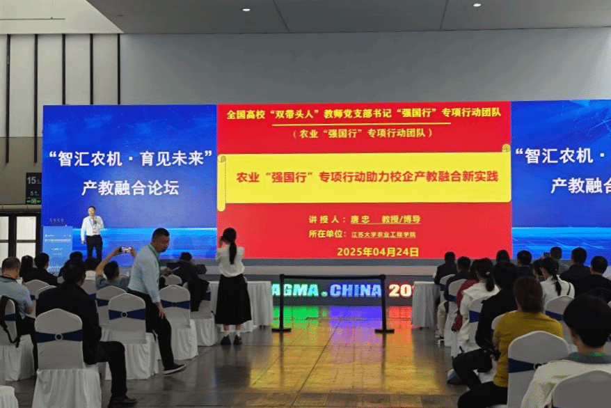 展会期间,农业工程学院教授唐忠应邀在“智汇农机·育见未来”产教融合赋能农业现代化专题论坛作题为《农业强国行专项行动助力校企产教融合新实践》的主旨报告。农业工程学院博士生方梦作题为《湿软土壤受载响应机理与高通过性履带花纹设计》的专题汇报并荣获智能农机装备青年论坛一等奖。