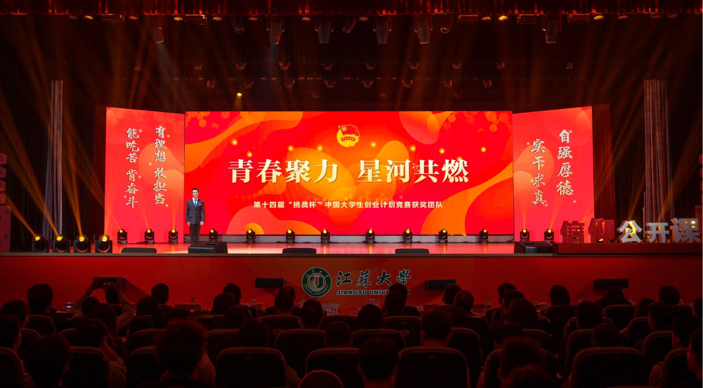 典礼现场,大学生艺术团表演舞蹈《为了万家灯火》,农业工程学院王亮辉同学带来TED演讲《青春聚力 星河共燃》,教师教育学院专硕23级团支部带来风采展示《如愿》,流体机械工程技术研究中心青年教师周岭带来青年教师说《奋斗的青春最美丽》,大学生艺术团表演舞蹈《接班人》。大学生艺术团献演的原创音诗画作品《夜空中最亮的星》引发强烈共鸣,作品聚焦“科学家精神”主题,以“中国应用语言学之母”“两弹一星”元勋郭永怀的夫人李佩(镇江籍)为创作原型,讲述了她在三尺讲台托举无数科研梦想故事。