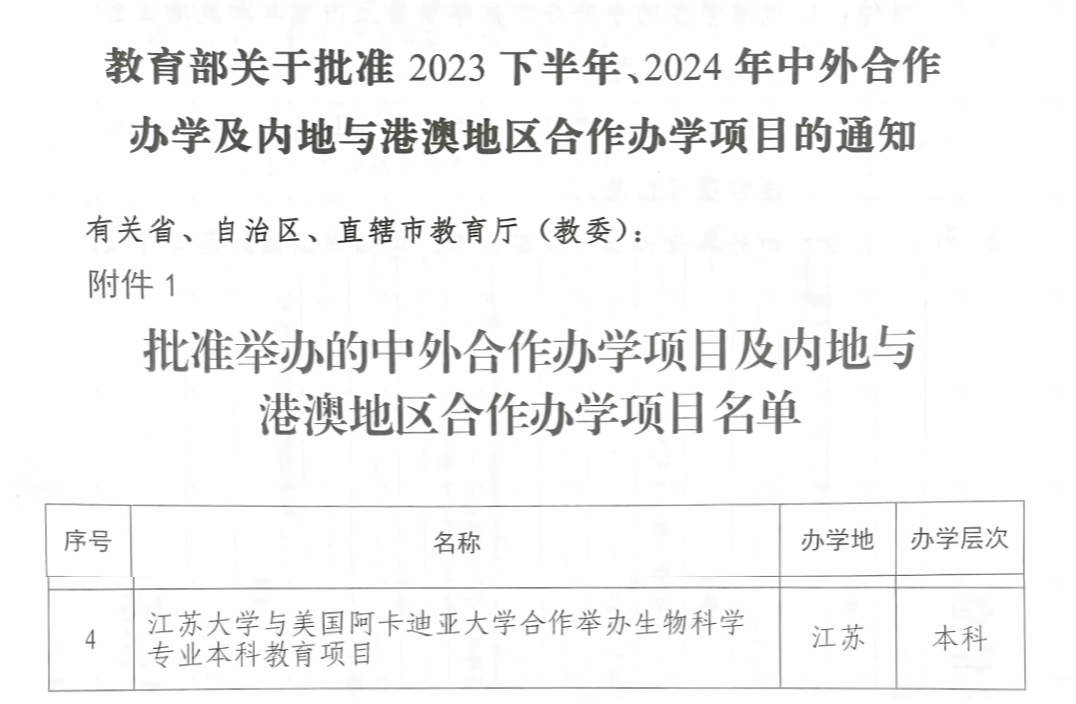 5月9日,教育部公布2025年经审核的中外合作办学机构和项目名单。九体育线上平台(集团)官方网站与美国阿卡迪亚大学合作举办的生物科学专业本科教育项目正式获批,这是我校在中外合作办学领域取得的又一重要突破。