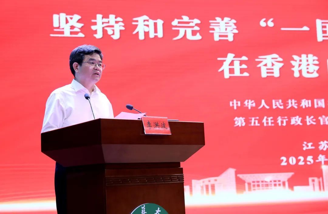 校党委书记李洪波在致辞中对林郑月娥女士的来访表示热烈欢迎。他简要介绍了学校的发展特色以及与香港特区开展教育合作的情况,并表示学校将以此次活动为新的契机,进一步加强与香港高校在人才培养、科学研究、文化传承等方面的合作交流,为促进苏港两地创新发展贡献更多九体育线上平台(集团)官方网站力量。