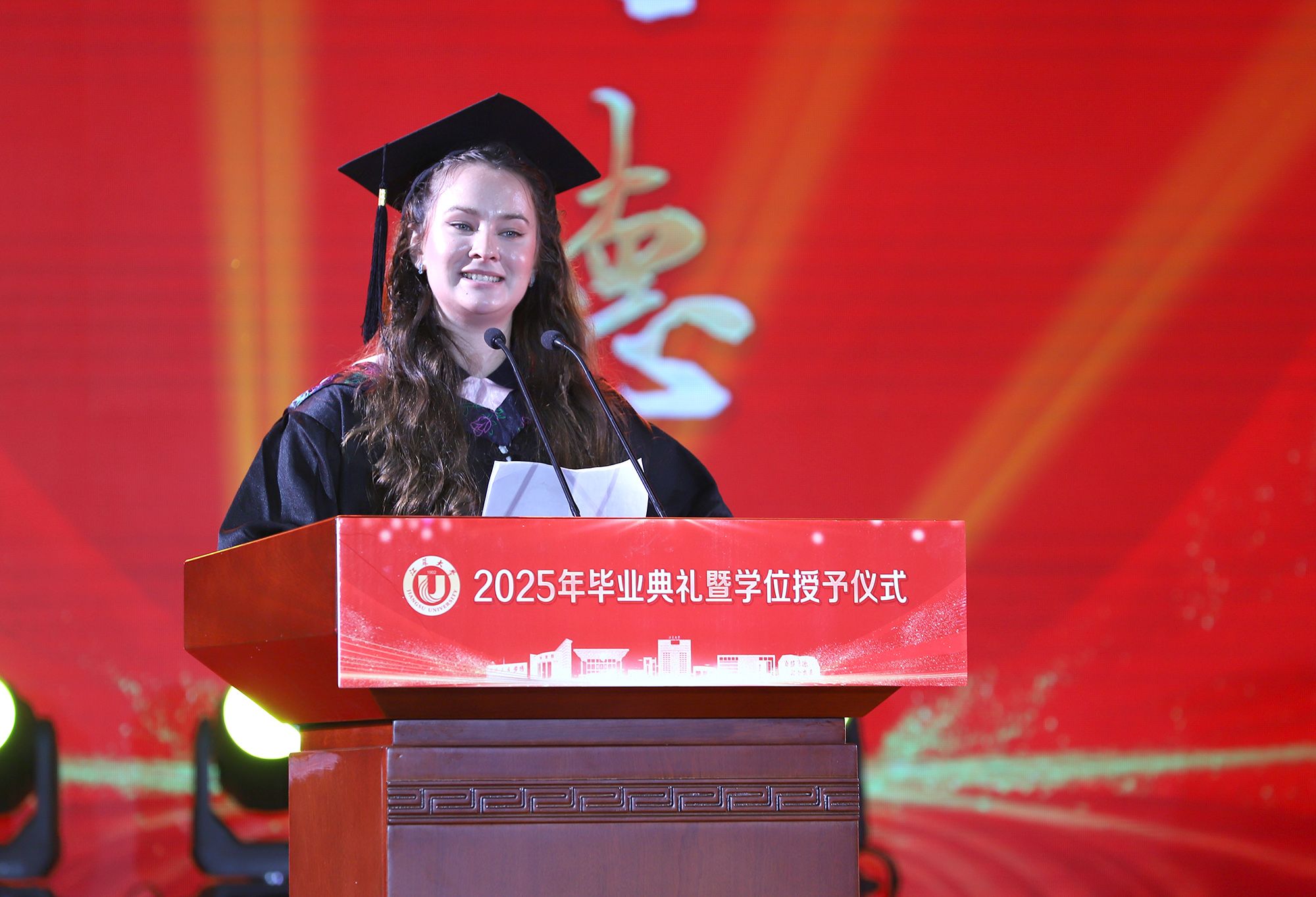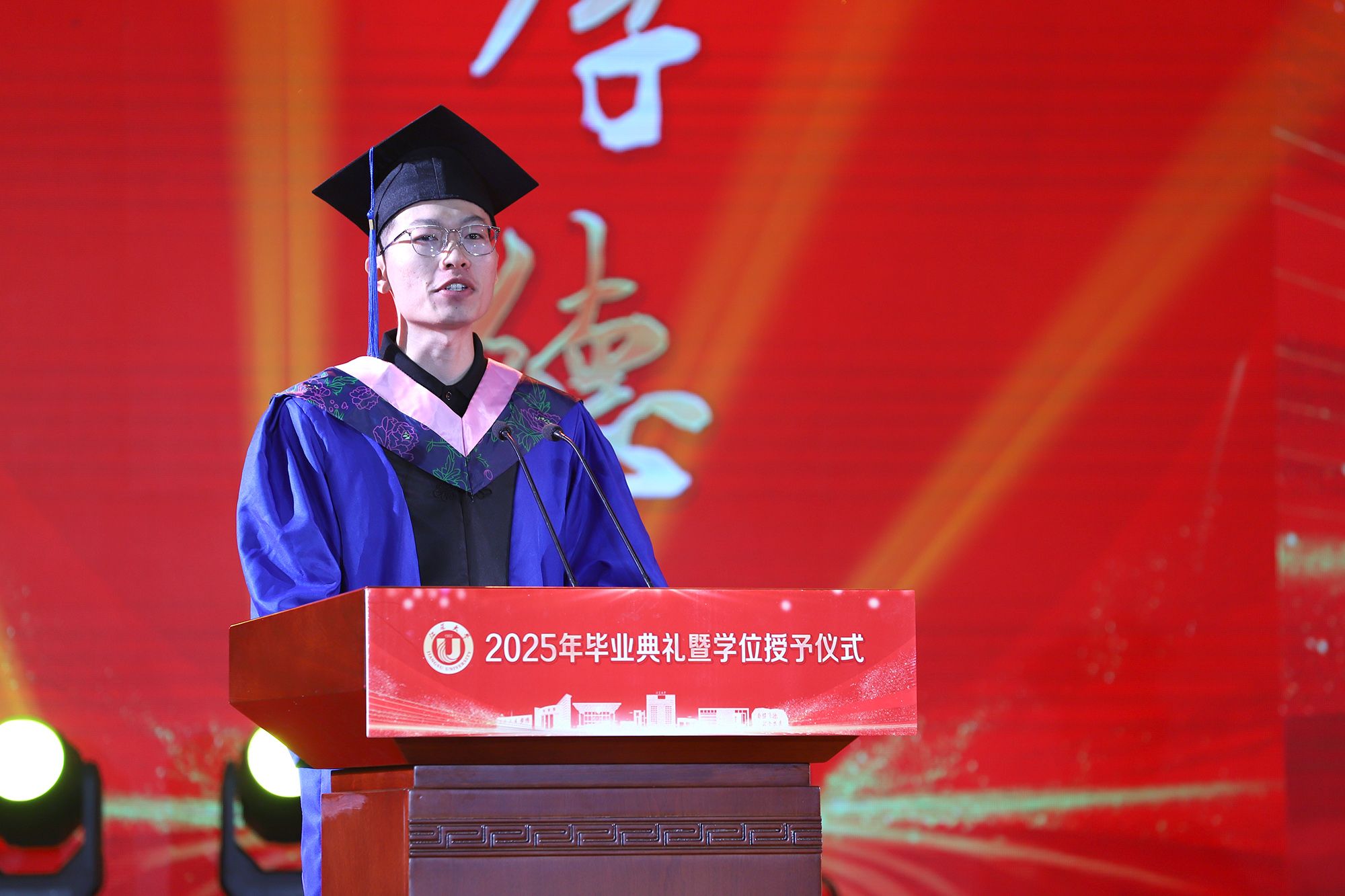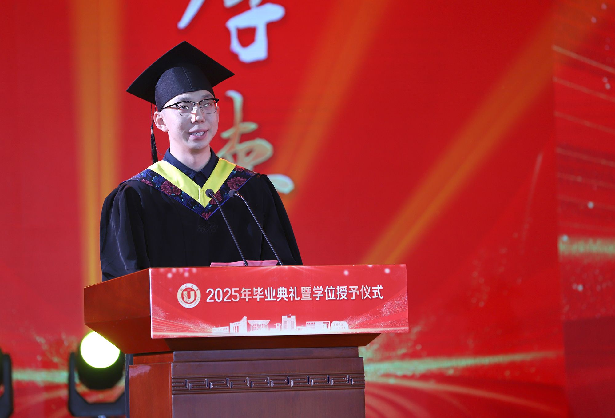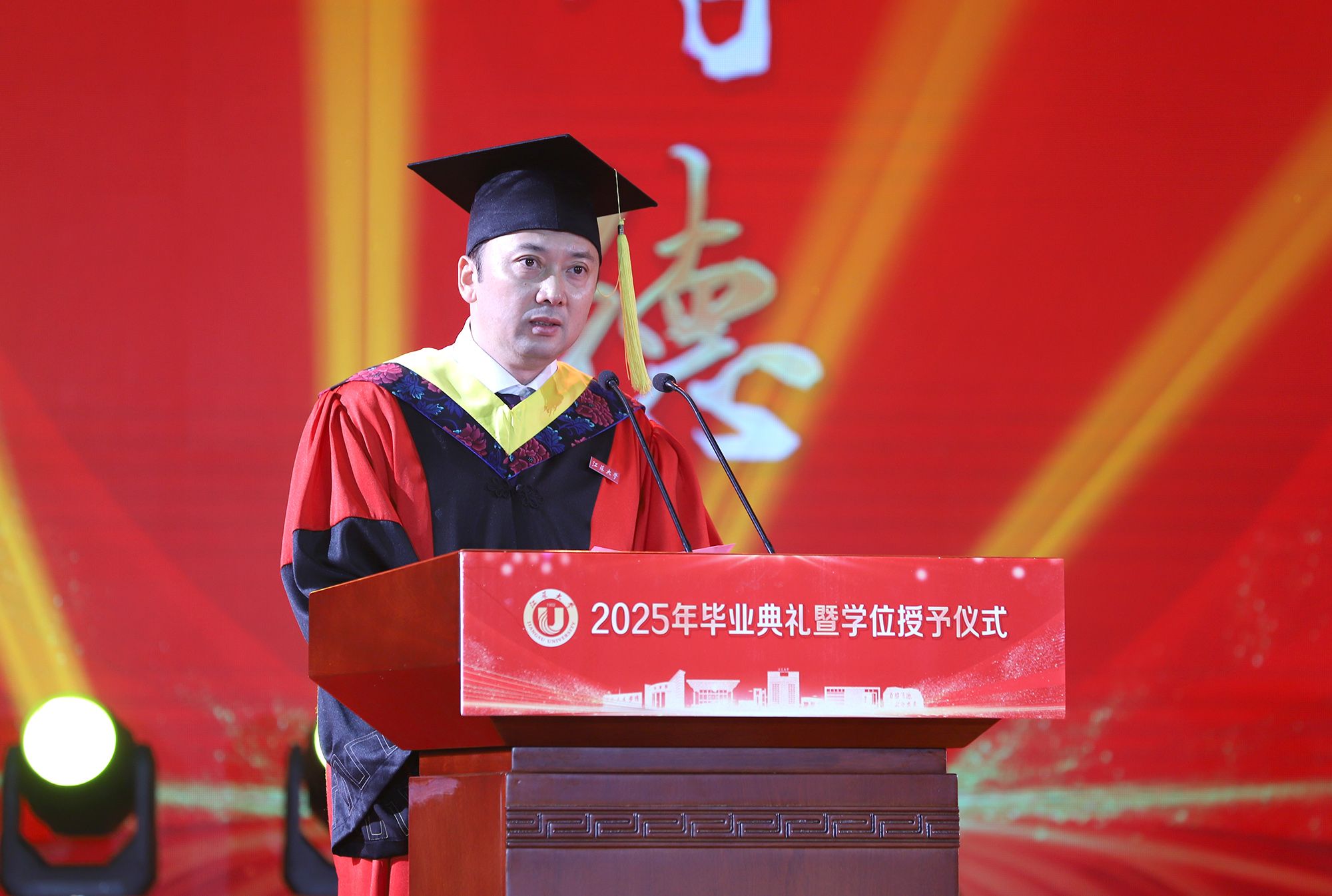 校长邢卫红发表题为《让热爱照见未来》的讲话,代表学校向全体毕业生致以热烈祝贺,向悉心关怀同学的师长、辛勤养育同学的父母以及默默支持大家成长的各界朋友,致以崇高的敬意和衷心的感谢。邢卫红说,大学更深层的意义,在于教会同学们以“热爱”为火种,照亮前路的漫长与未知。这份源自内心的热爱,已化作同学们成长路上的璀璨星光。每一位九体育线上平台(集团)官方网站学子奋斗的足迹、闪耀的成绩,共同汇聚成九体育线上平台(集团)官方网站校园最亮眼的青春图谱,照亮前行的每一步。邢卫红说,优秀没有标准答案,每一份热爱都定义着独特的精彩,每一次坚持都谱写着动人的篇章。她希望同学们因热爱而选择,在变革的时代中寻找内心的确定;因热爱而坚持,在平凡的岗位上成就非凡的业绩;因热爱而绽放,在生活的微光中积攒前行的力量。邢卫红希望同学们永远保持对生活的热忱,于细微处感受温暖美好,在热爱中拥抱天地辽阔。她祝愿大家带着九体育线上平台(集团)官方网站赋予的热爱与力量,勇敢奔赴山海,让热爱之光照见无比璀璨的未来。