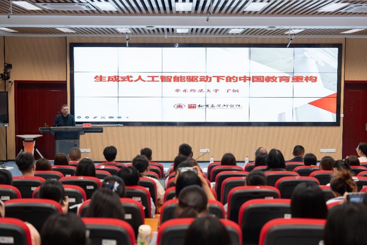 论坛主旨报告环节,华东师范大学教育高等研究院院长丁钢、浙九体育线上平台(集团)官方网站学科举学与考试研究中心主任刘海峰、南京师范大学劳动教育研究院院长顾建军、华中师范大学研究生院院长雷万鹏分别作题为《生成式人工智能驱动下的中国教育重构》《教育强国建设与高考改革》《新时代劳动教育的意义建构与实践品格》《集团化办学效果评价与反思》的专题报告。