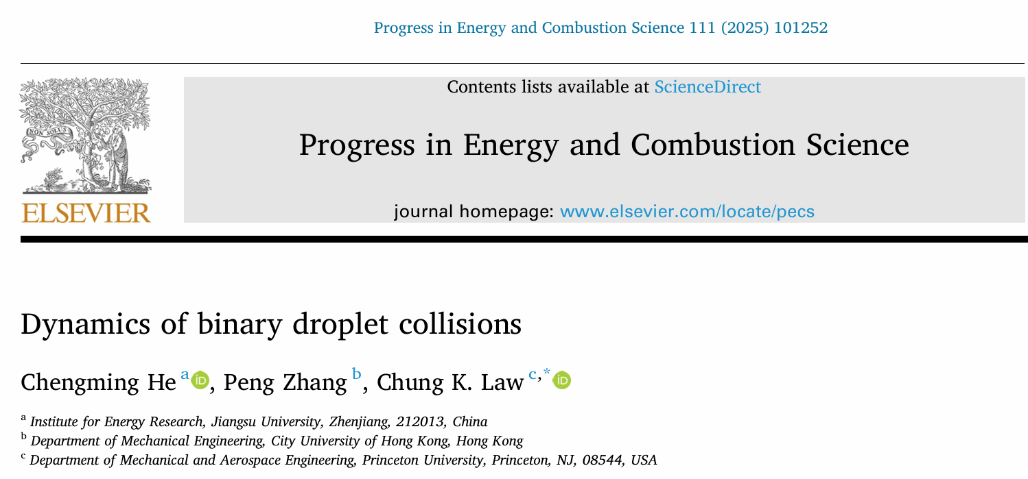近日,能源研究院金山青年特聘教授何成明联合香港城市大学副教授张鹏及美国国家工程院院士、普林斯顿大学教授Chung K. Law在能源领域国际顶级期刊Progress in Energy and Combustion Science上发表题为Dynamics of binary droplet collisions(《二元液滴碰撞动力学》)的综述论文。九体育线上平台(集团)官方网站为第一完成单位,也是学校首次在该能源领域顶刊上发表文章。
