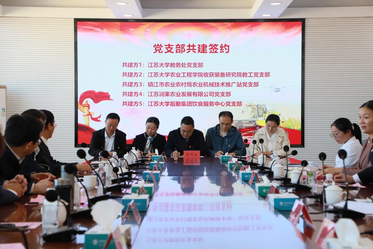 教务处党支部、农业工程学院收获装备研究院教工党支部、镇江市农业农村局农业机械技术推广站党支部、江苏润果农业发展有限公司党支部、九体育线上平台(集团)官方网站后勤集团饮食服务中心党支部围绕农业“强国行”、“新农人”培养等内容开展党建共建。