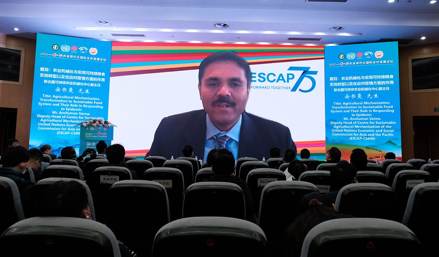 中国农业国际合作促进会会长许国成、中国农业机械工业协会执行副会长赵剡水、中国国际发展知识中心副主任蒋希蘅、中国教育国际交流协会副秘书长安延、中国农业机械化协会副秘书长夏明、中国农业科学院海外中心副主任聂凤英、农业农村部对外经济合作中心国际组织处副处长于浩淼、中国商业股份制企业经济联合会国际文化教育交流促进工作委员会主任邹海、中国国际科技促进会常务理事邢纪国;以及联合国粮农组织驻华代表文康农,联合国粮农组织植物生产与保护司司长夏敬源,联合国工业发展组织农业司司长德耶内·泰泽拉,联合国亚洲及太平洋经济社会委员会战略与项目管理司司长阿德南·阿里亚尼,联合国可持续农业机械化中心副主任安书曼,世界粮食计划署中国办公室南南合作主管贾焰,巴基斯坦国家农业研究委员会主席古兰·穆罕穆德·阿里尼,波黑塞族共和国农林水利部部长鲍里斯·帕沙里奇,莫桑比克教育部前部长、莫桑比克师范大学校长豪尔赫·费劳,尼泊尔跨喜马拉雅友好协会主席拉吉姆·库玛·贾哈,加纳苏尼亚尼能源与自然资源大学校长埃尔维斯·阿萨雷·比迪亚高,波黑塞族共和国巴尼亚卢卡大学副校长米罗斯拉夫·马利诺维奇等国内国际嘉宾线上出席论坛。