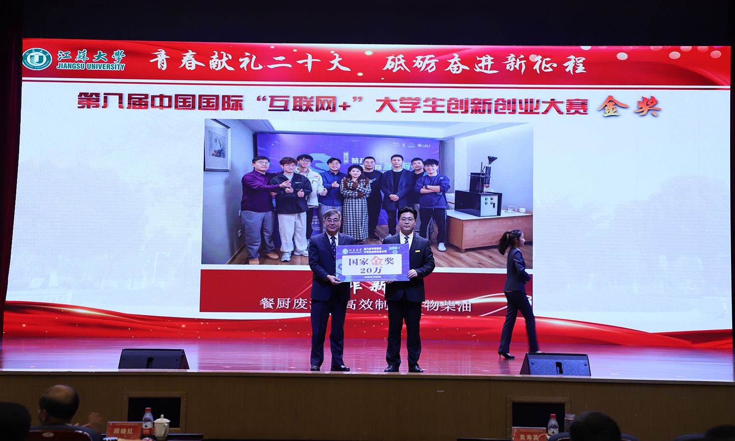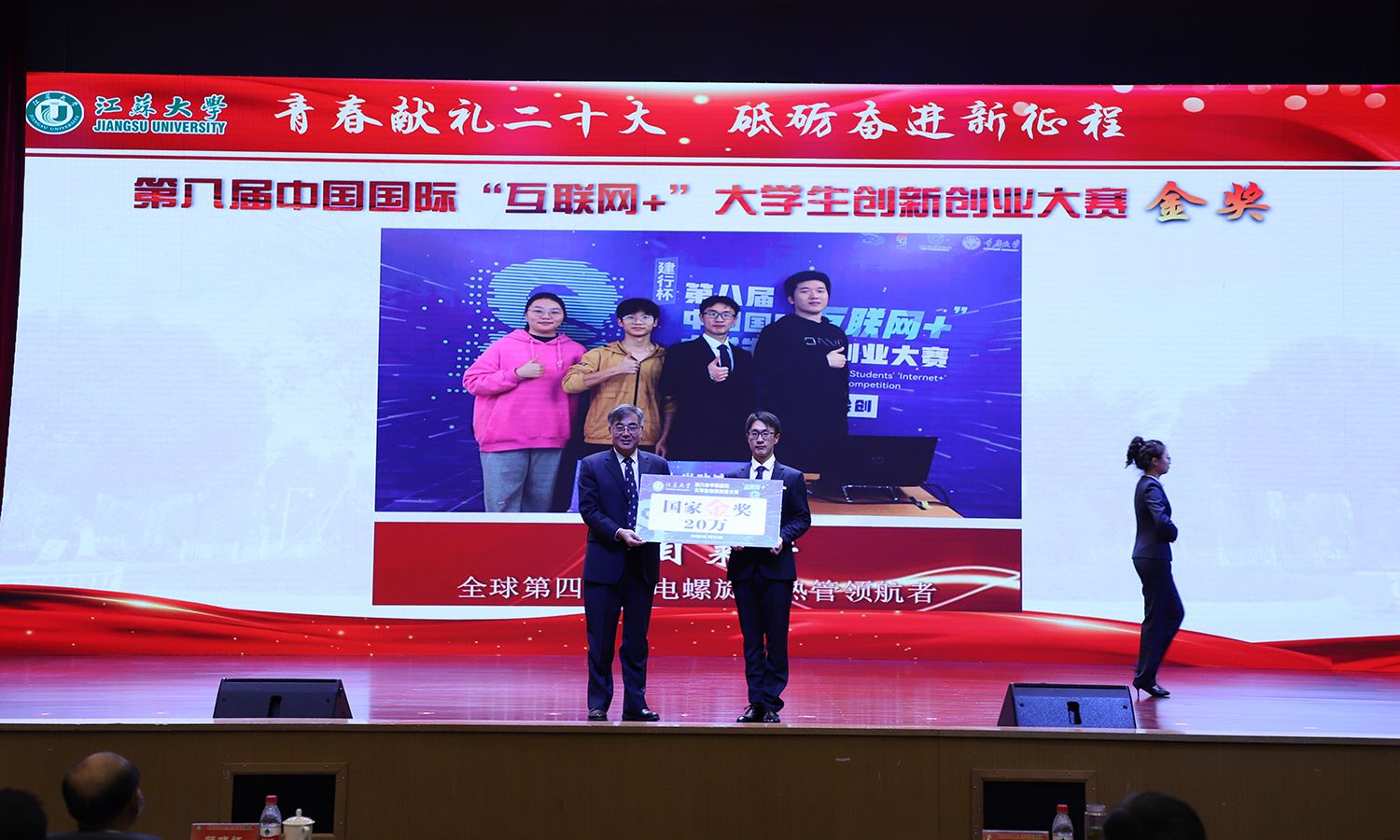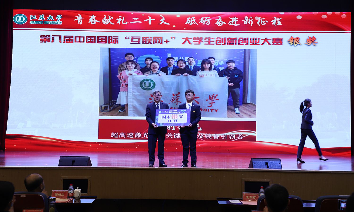 出席大会的领导为受表彰的先进集体和个人颁奖。校党委书记袁寿其为获得第八届中国国际“互联网+”大学生创新创业大赛国赛金奖、银奖团队代表和2022年全国大中专学生志愿者暑期“三下乡”社会实践活动优秀单位颁奖;颜晓红为2021-2022学年“博学”“求是”“明德”校长奖章获得者颁奖;校党委副书记李洪波为2022年度省级三好学生颁奖;校党委常委、纪委书记、派驻监察专员高庆国为2022年度省级优秀学生干部、省级先进班集体颁奖;副校长全力为2021-2022学年校三好标兵、校优秀研究生标兵颁奖;副校长赵玉涛为2022年度校大学生优秀共产党员代表颁奖;副校长李红为2022年度校大学生先进党支部颁奖;校党委常委、组织部部长马志强为2022年校社会实践活动先进单位颁奖;校党委常委、统战部部长杨敬江为2022年校社会实践活动十佳团队颁奖;校党委常委、宣传部部长杨道建为2022年校社会实践活动十佳个人颁奖。