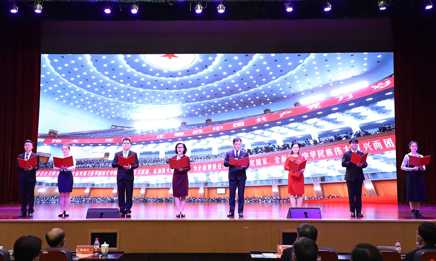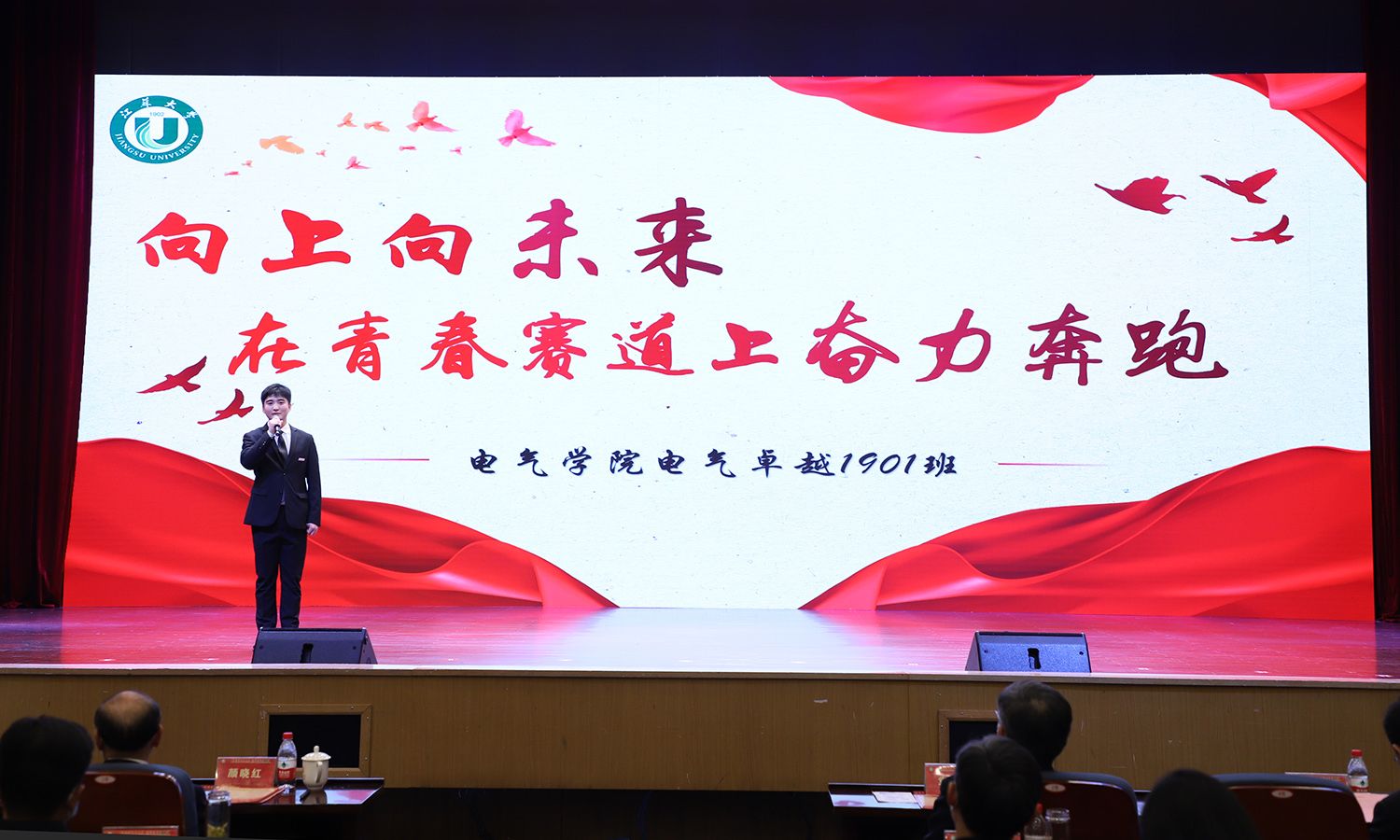 专职辅导员、学业导师以及学生代表共同朗诵《请党放心 强国复兴有我》,大会在师生合唱《青春就这Young》的歌声中落幕。