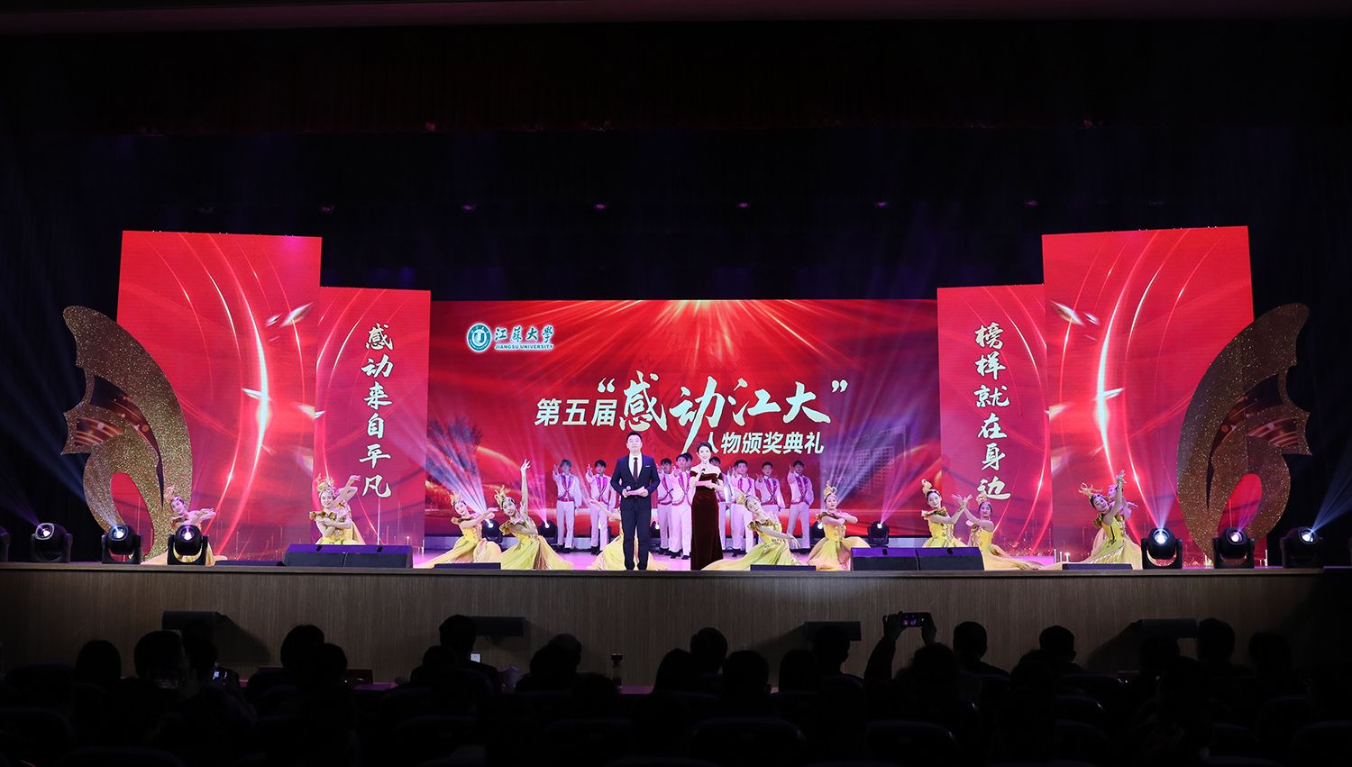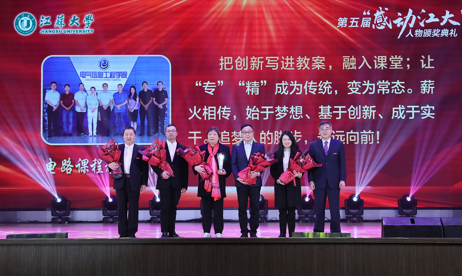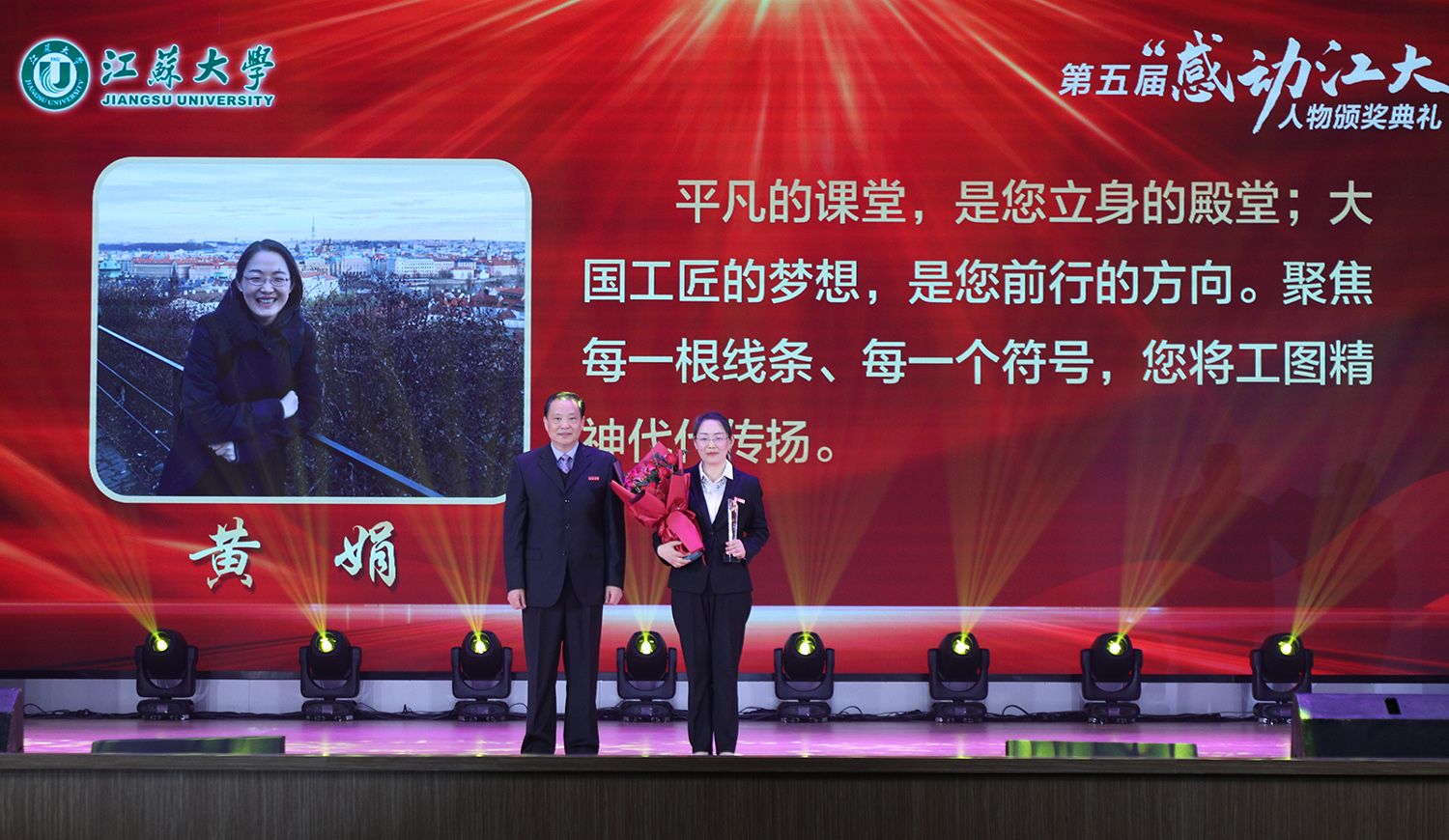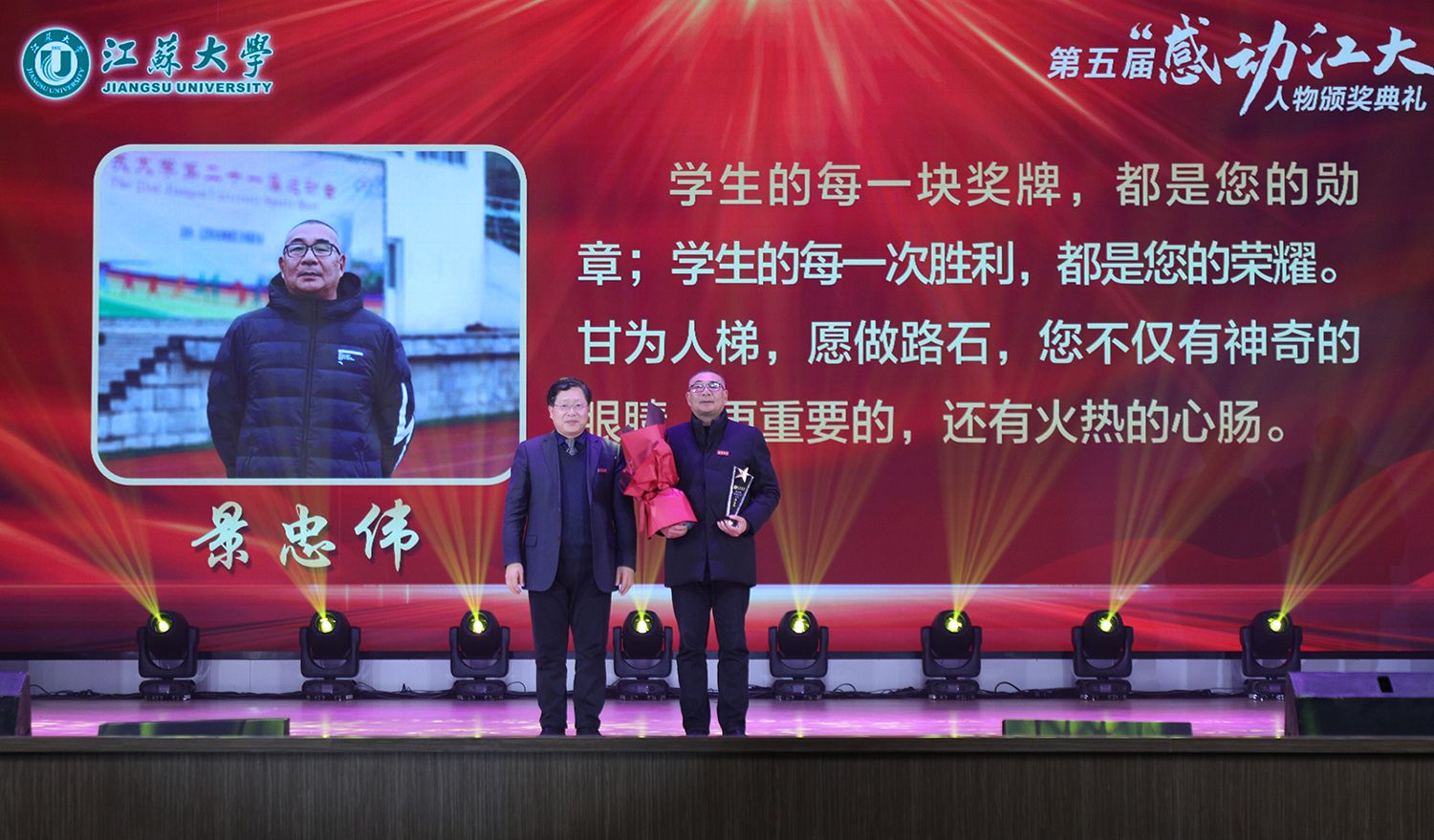典礼上,持续深耕关心下一代园地,年至耄耋依然初心不改的退休教师金树德;在教育教学改革殿堂孜孜以求、不断创新的电路课程教学团队;热爱科学研究,在嗜盐古菌领域取得卓越成就的食生学院教师崔恒林;出生教育世家,专注教学艺术的管理学院冯缨老师;医者仁心,哪里需要就在哪里的附属医院医生张炜;以校园田径场为家,把普通学生培养成田径冠军的体育部教师景忠伟;精益求精,致力于工匠精神培养的机械工程学院教师黄娟;义务带教,以“老黄牛”和“拓荒牛”的精神投身教育事业的附属学校教师李琦;以伙伴之力舞青春之曲,以鸿鹄之志做奋斗之士的伯藜学社学子;连续11年捐资助学,总金额达55万元却始终不为人知的“两个共产党员”,10个平凡感人的故事,10段不同的经历,伴随着组委会浓缩凝练的致敬词,传递着向善向上向真向美的正能量。