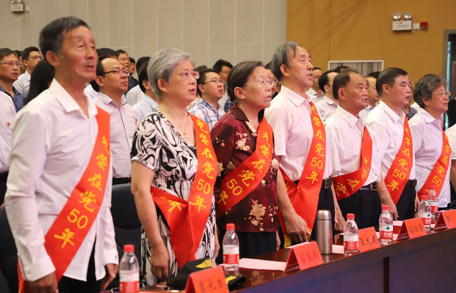 “光荣在党50年”党员代表,校各部门主要负责人,各二级党组织书记、副书记、党务办主任,受表彰集体和个人,党支部书记和新党员代表等参加大会。(党委组织部 党委宣传部)