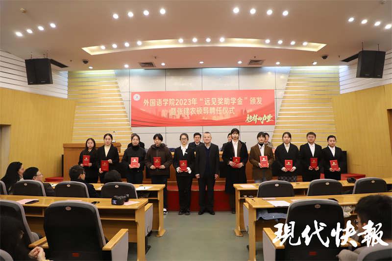 早在 2020 年 9 月,张建农便设立 " 远见奖助学金 " 支持母校的教育事业,每年出资 20 万元,连续五年,专门用于资助奖励外国语学院家庭经济困难学生和优秀学子。目前,已累计奖励、资助 3 届 240 余名学生。" 在张建农学长和学院老师的帮助下,我获得了成长路上不断前进的动力。" 来自宁夏的学生小刘连续三年获得 " 远见助学金 ",她以 4.01 的学分绩点顺利保研,并成为九体育线上平台(集团)官方网站研究生支教团的一员,她表示,要用实际行动表达感动与感谢,为国家和社会尽一份微薄的力量。