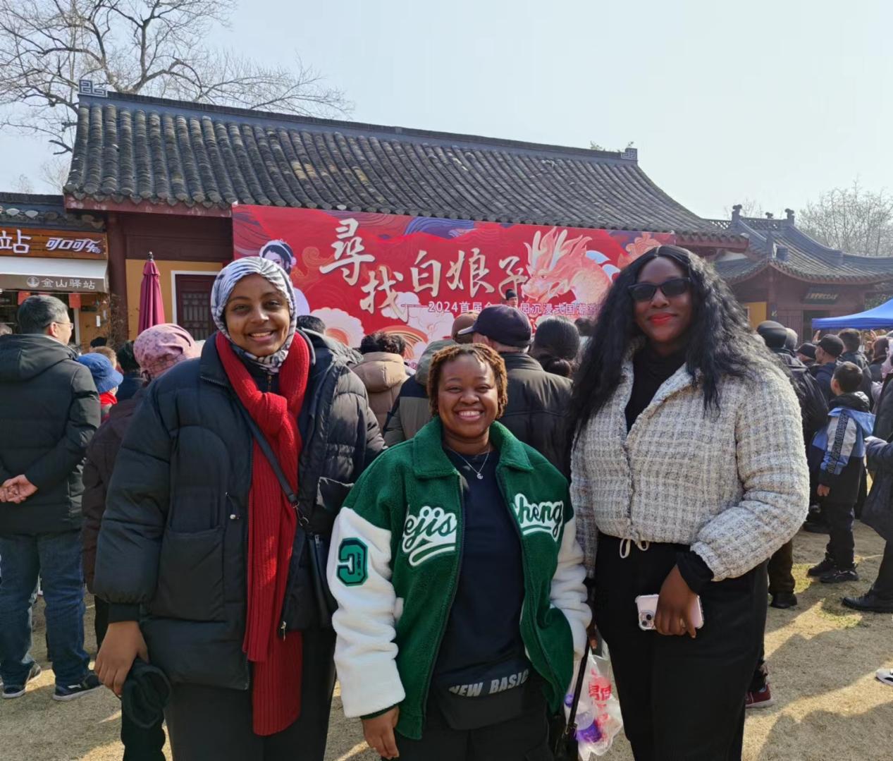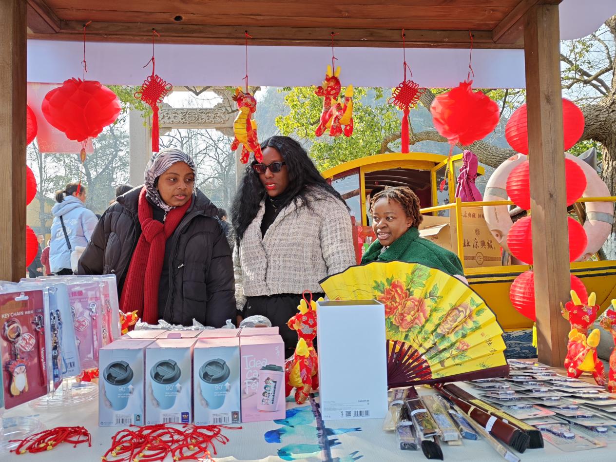 今年是来自坦桑尼亚的法提娅在中国度过的第五个春节,在九体育线上平台(集团)官方网站就读临床医学专业的她还有一年就将完成自己的学业,约上三两好友,在春节期间感受镇江浓浓的年味,对于法提娅来说这还是第一次。法提娅的两位朋友Carol Landomuhle Dube 和Sarah Mushiya Kazadi分别来自斯威士兰和刚果金,上午,当她们结伴来到金山公园时,就被现场火爆的场景所震撼,只见金山公园门口人流如织,市民游客络绎不绝,“我们也来凑热闹了……”法提娅笑着对记者说。