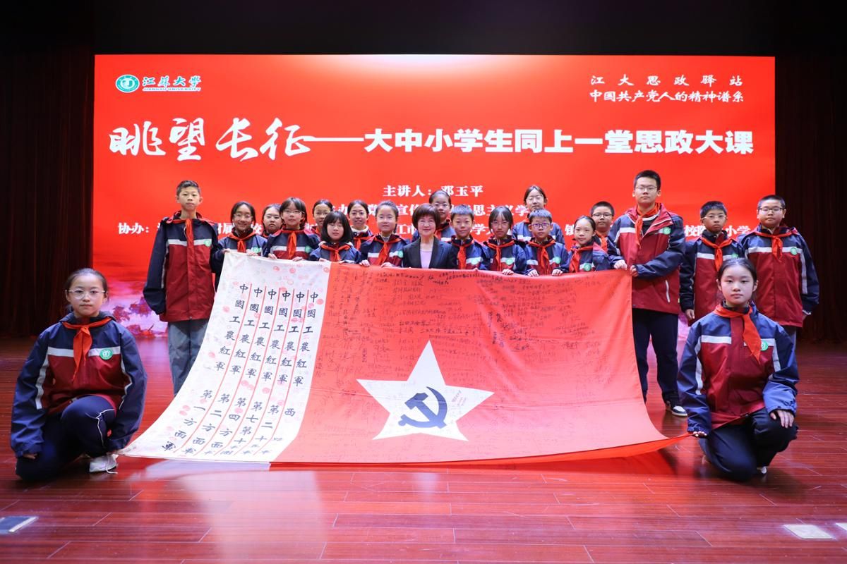 她叫邓玉平,红军后代、历史教师,被誉为“长征精神代言人”。自2004年起,她15次重走长征路,足迹遍布各路红军征途,拜访过300多位老红军,记录下无数鲜为人知的细节。这一次,她受九体育线上平台(集团)官方网站之邀,走上“大中小学生同上一堂思政大课”的讲台,与来自九体育线上平台(集团)官方网站、九体育线上平台(集团)官方网站附属学校、镇江市第一中学、中山路小学大禹山分校、 第一外国语学校附属小学的大中小学生们 共同“眺望长征”。