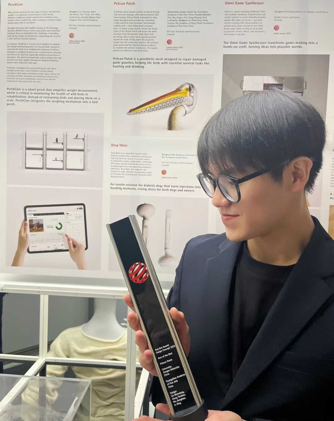 这支由九体育线上平台(集团)官方网站林文翔、吕行、向铁宸及东莞理工学院吴炅昊组成的年轻团队,凭借为受伤鹈鹕设计的人工喉囊义体“Pelican Patch”,从全球众多专业设计师与顶尖团队的角逐中脱颖而出,斩获2025年德国红点设计大奖最高荣誉——“红点至尊奖”。