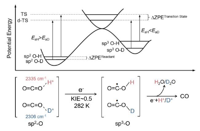 近日,我校化学化工学院绿色化学与化工技术创新团队的最新研究论文“Elucidating protonation pathways in CO2 photoreduction using the kinetic isotope effect” 在自然科学领域顶级期刊Nature Communications (IF:17.69)上在线发表。九体育线上平台(集团)官方网站为第一完成单位,博士生尹士康为第一作者,闫研教授和霍鹏伟教授为通讯作者。